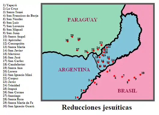- ↑ "Reductions of Paraguay | Encyclopedia.com". www.encyclopedia.com. Retrieved 2020-09-03.