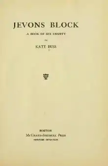 - ↑ "Jevons block: a book of sex enmity by Kate Buss". HathiTrust. Retrieved 21 November 2012.