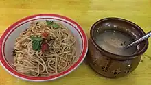 Jiangxi cuisine (Chinese: 江西菜; pinyin: Jiāngxī cài), also known as Gan cuisine (赣菜; 贛菜; gàncài), is a style of Chinese cuisine derived from the native cooking styles of Jiangxi province in southern China.[1] According to the East China Travel Guide published in 1983, Jiangxi Cuisine has its unique taste which can be described in four Chinese idioms: 原汁原味(aim to bring out the own flavor of the cooking material),油厚不腻(dishes contained a significant amount of oil but the taste are not greasy),口味浓厚(dishes have really thick taste),咸鲜兼辣(always come with spicy solid, salty flavor).[2] Jiangxi cuisine is widely popular within the ordinary family because most of the notable dishes from Jiangxi cuisine are the extension of homely dishes with solid local flavor.[3]