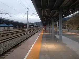 Jianningxian North railway station (Chinese: 建宁县北站) is a railway station located in Jianning County, Sanming, Fujian, China. It is an intermediate station on the Xiangtang–Putian railway and the northern terminus of the Jianning–Longyan railway.