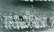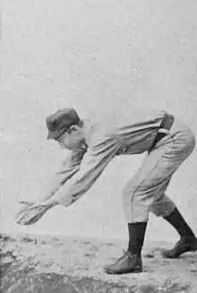 At the same time, McAleer proved a strong performer.[4] A later newspaper account described him as an outstanding outfielder who was "blessed with excellent speed".[4] The article noted that McAleer's skills as a sprinter helped him steal 51 bases in one year and 41 in another.[4] According to some accounts, he was "the first centerfielder to take his eyes off a fly ball, run to the spot where it fell to earth, and catch it".[8] Less proficient as a hitter, McAleer accumulated a lifetime batting average of .253.[4] During his career, the league's batting (pitchers removed) average for players with the same home field was .284.[9] On April 24, 1894, he assisted in Cleveland's 1–0 victory over Cincinnati with a single in the ninth that drove home Buck Ewing, who had doubled.[2] Along with teammates Cy Young, Jesse Burkett, John Clarkson, and Charles Zimmer, McAleer also participated in the Spiders' victory over the Baltimore Orioles in the 1895 Temple Cup, a post-season series between first and second-place teams of the National League.[7] The Spiders placed second to the Orioles at the close of both the 1895 and 1896 seasons.[7] McAleer's performance came in spite of a serious injury he received during a game held in Philadelphia on August 24, 1895, when he collided with a fence.[10] Furthermore, he balanced his achievements in sports with a foray into politics in his hometown of Youngstown. During the summer of 1895, McAleer was promoted in the local media as a mayoral candidate, first as a Republican,[11] and then as an independent.[12]