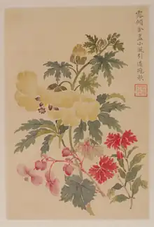 Her paintings depict landscapes, portraits, still lifes, flowers, and Buddhist religious subjects, including dozens of images of Guanyin. A devout Mahāyāna Buddhist, she painted an elaborate hanging scroll of Guanyin in 1803 to commemorate her Bodhisattva vows. She was a successful professional painter and her work was sought after not only in China, but also in Japan and Korea.[1]