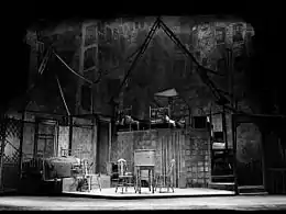 After his education and spending 13 months in Europe "absorbing the revolutionary changes occurring in traditional stage design", in 1923 he worked for the Theatre Guild in New York as an assistant stage manager and bit actor.[2] Mielziner's Broadway debut as a designer was in 1927 with The Guardsman, for which he designed the scenery and lighting.[7] His other Broadway credits include the original productions of Strange Interlude, Sweet and Low, Of Thee I Sing, The Barretts of Wimpole Street, Winterset, Oh, Captain!, Dodsworth, Another Part of the Forest, Carousel, South Pacific, Guys and Dolls, The King and I, A Streetcar Named Desire, Death of a Salesman, Cat on a Hot Tin Roof, Gypsy, and The Prime of Miss Jean Brodie,[8] as well as the film Picnic and the ballet Who Cares?. He won the Academy Award for best color art direction for his work on Picnic.[9]