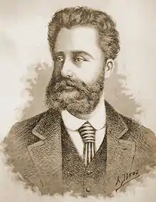 On 19 December 1863, his La conquista de Madrid premiere at the Teatro de la Zarzuela, with libretto by Luis Mariano de Larra.[6] In 1865, he was hired as conductor for the Teatro de los Campos Eliseos, in Madrid, in one of the first performances of the music of Richard Wagner.[1] In 1868, he was appointed director and chairman of the Sociedad de Conciertos de Madrid, where the opera Tannhäuser premiered.[7] The same year he toured Cuba with his own company and flew to Mexico because of a major revolt,[8] returning to Spain in 1870 with serious health problems and financially ruined.[8] He died as a result of severe liver disease shortly after arriving to Madrid.[8]