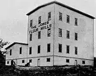 Following his death his sons, Allan R. and William Haskell Jobes took over the ownership of the mill.[6] They sued the City of St. Johns in 1910 saying that a planned sewer would runoff into their property. A judge allowed the city to continue with the construction.[7] William Haskell Jobes died of heart disease in 1911, leaving his brother Allan R. Jobes as the sole owner.[1] By 1917 the mill was producing 500 barrels of flour per day. In 1918 the mill was purchased by the Rose City Flour Mill, who used it as a subsidiary. The new owners planned to double the production of barrels per day.[6] Allan R. Jobes died in 1920.[8] The flour mill was demolished in 1930 and a lumber mill was constructed in its place.[9]