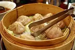 The most famous dish at Joe's Shanghai is the pork or crab meat xiaolongbao,[3] a type of small Chinese steam bun, in which the soup is encased inside the dumpling. This is achieved by chilling a highly gelatinous soup and wrapping it in the dough while solid. When the buns are later steamed, the solids melt back into liquid soup within the outer bun casing.[4]