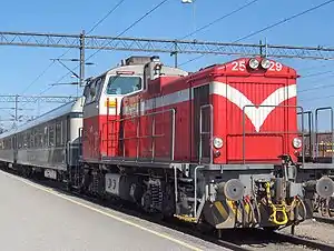 Passenger trains to Helsinki are mainly operated by InterCity or double-deck InterCity 2 carriages hauled by VR Class Sr1 locomotives or by Pendolino units.