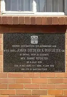 Brigadier Johan Potgieter SM (14 May 1935 – 4 January 1976) was a South African Army officer from the artillery who served as OC School of Artillery, SA Military College, Director Artillery, SA Military Academy and later Orange Free State Command. He was appointed the OC 2 Military Area from late 1975 in Operation Savannah.[2]