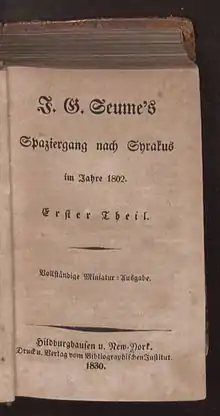 This article incorporates text from a publication now in the public domain: Chisholm, Hugh, ed. (1911). "Seume, Johann Gottfried". Encyclopædia Britannica. Vol. 24 (11th ed.). Cambridge University Press. p. 707.