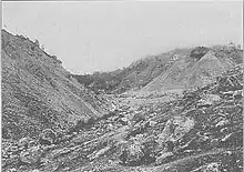 A notable environmental concern was the deforestation at the summit of Mount Kabatayama, leading to pronounced surface erosion and additional sediment deposition in the Yodo River. As a remedial measure, the engineers recommended prohibiting logging activities on the mountain slopes and advocated for the reforestation of the mountain's apex. These interventions, over time, proved successful in mitigating the silting issues in the downstream sections of the river.[7]:344[17] These initiatives were termed "mountain works" by De Rijke, initially comprising fascine bundles (wiepen) on the slopes, later evolving into hedge-like structures.