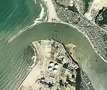 The Mikuni breakwater in 2002 and the mouth of Kuzuryu River