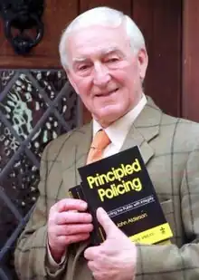 While Chief Constable he acquired a reputation for radical ideas which were not always popular with other senior police officers, who regarded him as "soft", and was also a champion of community policing.[4] Alderson was frequently portrayed in the media as the polar opposite to James Anderton, Chief Constable of Greater Manchester from 1976 to 1991, who was seen as a champion of hardline, aggressive policing and a more punitive criminal justice system.