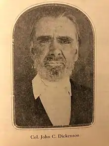 John Calhoun Dickenson (December 4, 1815 - July 18, 1890) was a Virginia planter and politician who served in both chambers of the Virginia General Assembly, including in the Virginia Senate during the American Civil War and after Congressional Reconstruction ended, and is usually referred to with the honorific "Colonel", perhaps alluding to his service with the Home Guard during the American Civil War.