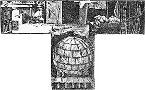 A further demonstration was given, of a rotating iron globe suspended on an axle, which was used to saw some wood. The globe was not opened, Keely saying that it was hollow and empty, and his assistants saying that it contained "some bits of mechanism". A skeptical reporter, who believed that it was in fact operating on compressed air, asked how long the engine could work. Keely replied that he had one run for 40 days, whereupon the reporter suggested he simply run it for half an hour, just making the globe rotate. Keely duly set the globe rotating, and it ran for less than 15 minutes, constantly decreasing in power, before he stopped it.[4]