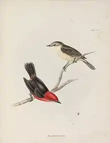 The Zoology of the voyage of H.M.S. Beagle : under the command of Captain Fitzroy, R.N., during the years 1832 to 1836, edited and superintended by Charles Darwin. [Album view] Pl. no. 7, Pyrocephalus nanus held by the State Library of New South Wales digital reference number a1417005h