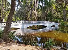 Drayton's focus now became rebuilding Magnolia's deteriorating gardens and postponing his ordination. He chose a garden format popular in the mid-nineteenth century called the Romantic style, a natural, informal approach to design and plantings. Drayton's "picturesque" style of Romanticism, "expressed by striking, irregular spirited forms", was a stark contrast to the formal, geometric style of nearby Middleton Place and a naturalistic expression at Drayton Hall, where "man exert[ed] control over the natural environment."[19] Drayton's Magnolia became an innovative showcase for unbridled natural beauty, "which allowed man and nature to co-exist. Wildness was glorified and enhanced, not tamed."[20] In the 1840s Drayton was one of the first people in the United States to plant Camellia japonica (Japanese camellia) outdoors on a large-scale and grow Azalea Indica (Indian azalea) outdoors.[21][22] His vision and genius turned Magnolia Plantation and Gardens into one of the world's most impressive, cultivated landscapes.[23][24]