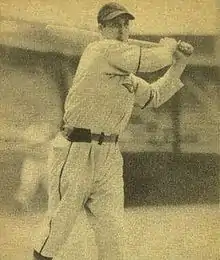 In 1938, Rizzo's rookie season with the Pirates, he ended the season with a .301 batting average and 111 runs batted in. His 167 hits including 31 doubles, nine triples and 23 home runs.[2] Rizzo set a Pirate record for home runs that lasted until Ralph Kiner tied Rizzo with 23 in 1946 and took sole possession with 51 in the 1947 season.[3] No other rookie would break a team single-season home run record until Pete Alonso of the New York Mets did so in 2019.[4] Rizzo held the Pirate rookie record with Kiner until Jason Bay hit 26 in his first season in 2004.[5][6] The Rookie of the Year Award had not yet been established, but Rizzo finished sixth in the balloting for National League Most Valuable Player in his inaugural season, an award won by Ernie Lombardi the Cincinnati Reds.[7] Rizzo was third in the National League in runs batted in, fifth in home runs, sixth in runs scored (with 97) and ninth in hits.[8]