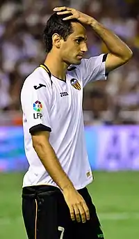 Jonas scored both goals for Valencia in a 2–0 Champions League win against Lille on 2 October 2012.[19][20] In the 2012–13 La Liga, he scored a personal-season high of 13 goals for Valencia.[21] On 1 December 2013, Jonas hit an eight-minute hat-trick as Valencia defeated ten-man Osasuna in a home league match.[22] On 1 September 2014, he rescinded his link with the club.[23]