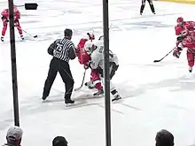 Early in Staal's rookie season, however, there was still speculation that he would be returned to his junior team before playing his 10th game to avoid allowing him to accrue a full season under the NHL's collective bargaining agreement.[8] Due to his strong play, however, particularly on the penalty-kill, the Penguins chose to keep him for the remainder of the season.[9] Staal, along with fellow rookie Evgeni Malkin joined superstar Sidney Crosby, who had himself only entered his second NHL season, and goaltender Marc-André Fleury to form an effective young nucleus that revived the Penguins franchise.