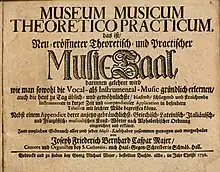 - 1732, Museum musicum theoreticalo-practicum. The author advertised on the title page that readers would learn how to thoroughly learn both vocal and instrumental music) (1732).[3] A second edition came out in 1741.[3]