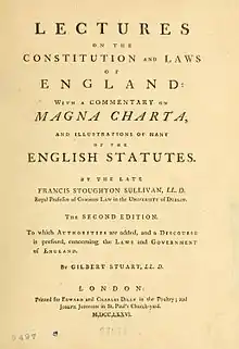 Partially as a result of his association with British Dissenters, Johnson became involved in publishing tracts and sermons in defence of the American revolutionaries. He began with Priestley's Address to Protestant Dissenters of All Denominations, on the Approaching Election of Members of Parliament (1774), which urged Dissenters to vote for candidates that guaranteed the American colonists their freedom.[36] Johnson continued his series of anti-government, pro-American pamphlets by publishing Fast Day sermons by Joshua Toulmin, George Walker, Ebenezer Radcliff, and Newcome Cappe.[37] Braithwaite describes these as "well-articulated critiques of government" that "were not only unusual but potentially subversive and disruptive", and she concludes that Johnson's decision to publish so much of this material indicates that he supported the political position it espoused.[38] Moreover, Johnson published what Braithwaite calls "probably the most influential English defence of the colonists", Richard Price's Observations on the Nature of Civil Liberty (1776). Over 60,000 copies were sold in a year.[38] In 1780 Johnson also issued the first collected political works of Benjamin Franklin in England, a political risk as the American colonies were in rebellion by that time.[39] Johnson did not usually reprint colonial texts – his ties to the revolution were primarily through Dissenters. Thus, the works published by Johnson emphasized both colonial independence and the rights for which Dissenters were fighting – "the right to petition for redress of grievance, the maintenance and protection of equal civil rights, and the inalienable right to liberty of conscience".[40]