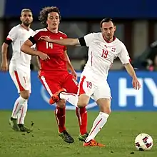 Josip Drmić (Croatian pronunciation: [jǒsip dř̩mitɕ];[3][4] born 8 August 1992) is a Swiss professional footballer who plays as a striker for Prva HNL club Dinamo Zagreb.