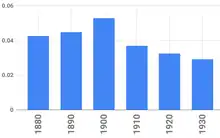 The number of newspapers in Oregon as a percentage of the population spiked around 1900. Turnbull, who compiled the data, attributed this to "a decade of opening up the country, establishing towns and cities, a decade of land and timber notices," and observed that, from 1900 up to the date of his writing (1939), a shrinking number of newspapers provided greater circulation numbers overall.