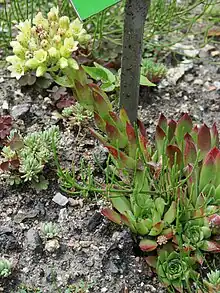 | Jovibarba heuffelii, at a botanical garden in Wroclaw, Poland | |