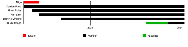 | Members | Damian Priest Rhea Ripley Finn Bálor "Dirty" Dominik Mysterio JD McDonagh |