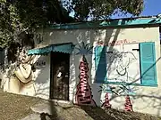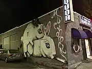 She is best known for her murals and graffiti work around Venice, often emphasizing use of the color green.[2] In addition to murals in the Hotel Casa del Mar and other local businesses, her work has been exhibited in various local galleries, including LAB ART Los Angeles and the Pacific Design Center.[3]
