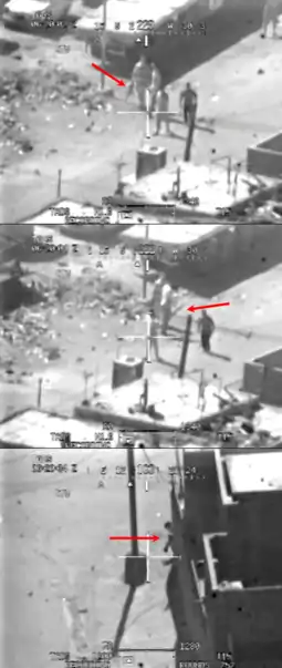 On July 12, 2007, a series of air-to-ground attacks were conducted by a team of two U.S. AH-64 Apache helicopters in Al-Amin al-Thaniyah, New Baghdad, during the Iraqi insurgency which followed the invasion of Iraq. On April 5, 2010, the attacks received worldwide coverage and controversy following the release of 39 minutes of classified gunsight footage by WikiLeaks.[6] The video, which WikiLeaks titled Collateral Murder,[7][8] showed the crew firing on a group of people and killing several of them, including two Reuters journalists, and then laughing at some of the casualties, all of whom were civilians.[15] An anonymous U.S. military official confirmed the authenticity of the footage,[16] which provoked global discussion on the legality and morality of the attacks.