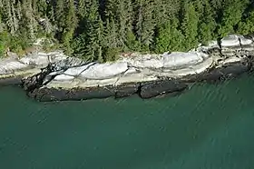 The Juneau gold belt is located in the southeastern portion of the U.S. state of Alaska. This belt is approximately 100 miles (160 km) in length, north/northwest-trending,[1] and extends from Berners Bay southeastward to Windham Bay, 60 miles (97 km) southeast of Juneau, and includes Douglas Island.[2][3]:25 The belt contains over 200 gold-quartz-vein deposits with production nearing 7,000,000 ounces (200,000,000 g) of gold.[4] More than three-quarters of Alaska's lode gold was mined from the Juneau gold belt.[5]