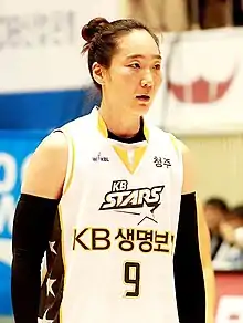 ![]() Jung in her Cheongju KB Stars uniform at a 2016 match against Guri KDB Life Winnus | |