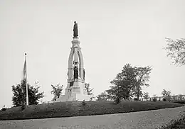 Two years after his wife died in 1887 Rathbone died at the age of 50 on December 9, 1889, in Lima, Ohio, and was officially honored as the founder of the Knights of Pythias, that same year. Rathbone is buried at New Forest Cemetery in Utica, New York. In 1892 a large monument with a statue of his likeness was erected in his honor as founder of the Knights of Pythias and marks his grave site.[3][1]