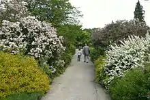 The arboretum covers over 40 hectares (99 acres) and is famous for rich collections of rhododendrons, azaleas, magnolias, conifers, lilacs, apple trees, cherries, meadowsweets, honeysuckles, poplars, birches, and other woody species from all over the world. Old specimens of native and alien trees and shrubs can be seen there, such as lindens, beeches, oaks, maidenhair trees, arborvitaes, spruces, and firs.