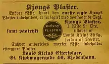 Seidelin's business was sold to Louis Klein in around 1840. Klein was the son of master baker Louis Klein Sr., whose property (home and bakery) was located just a few houses down the street at No. 62.[7] Klein had recently married Emilie Klein. After the death of her father, possibly by suicide, follow the fire of his property Dalsborg in Snekkersten, she had been raised by her aunt and uncle in Køng. The uncle Christian Gottfried Voelker was manager of Køng Textile Factory. He had also produced the so-called Køng Plaster, a very popular remedy for treating wounds (prepared from red lead, olive oil and campher). The right to produce this paste had following his death been passed down to Emilie Køhlert. She had prior to the wedding produced Køng Plaster in her home at the corner of Kompagnistræde and Badstuestræde (No. 62, now Kompagnistræde 8). It was the sale of Køng Plaster that enabled Klein to buy Seidelin's business since it was used for paying the installments on the property.[8]