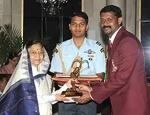 ![]() President Pratibha Patil presenting the Arjuna Award-2010 to Shri K. J. Kapil Dev | |||