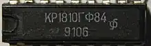 The K1810VM86 (Russian: К1810ВМ86)[1][2] is a Soviet 16-bit microprocessor, a clone of the Intel 8086 CPU with which it is binary and pin compatible. It was developed between 1982 and 1985.[3] The original K1810VM86 supported a clock frequency of up to 5 MHz while up to 8 MHz were allowed for the later K1810VM86M (К1810ВМ86M; corresponding to Intel 8086-2).[3] The K1810VM86 was manufactured plastic 40-pin dual in-line package (as KR1810VM86 / КР1810ВМ86) or in a 40-pin ceramic dual in-line package (as KM1810VM86 / КМ1810ВМ86 for the commercial version or M1810VM86 / М1810ВМ86 for the military version). A clone of the related Intel 8088 with its 8-bit bus was manufactured as the K1810VM88 (Russian: К1810ВМ88), also in plastic and ceramic packages.