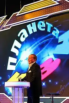 KVN (Russian: КВН, an abbreviation of Клуб весёлых и находчивых, Klub Vesyólykh i Nakhódchivykh or Ka-Ve-En, "Club of the Funny and Inventive [people]") is a Russian and formerly Soviet comedy television show and international competition in which teams—usually composed of college students—compete by giving humorous answers and show prepared sketches. The show originated in the Soviet Union and is based on the earlier program An Evening of Funny Questions (Russian: Вечер весёлых вопросов, romanized: Vecher vesyolykh voprosov). The program was first aired on the First Soviet Channel on 8 November 1961.[1]