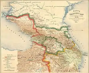 ![]() Map of Kabardia in c. 1880s in yellow | |||||||||||