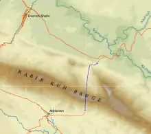Kabir Kouh Tunnel is an ongoing road tunnel project in Ilam Province, Iran. The tunnel passes under the Kabir Kouh range connecting the counties of Darreh Shahr and Abdanan, shortening the current 40-kilometre (25 mi) mountain pass to about 6 km. Kabir Kouh is a 170-kilometre (110 mi) long mountain range in Ilam Province extending along a southeast-northwest axis from an area near Pa Alam, Lorestan Province to the vicinity of Chenar Bashi about 20 km (12 mi) south of Ilam. The range acts as a barrier between the province's western areas such as Abdanan and border cities of Mehran and Dehloran with the country's internal road networks.