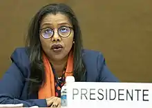 In 2019 Hassan took on the chair of the Social Forum of the United Nations Human Rights Council in Geneva.[5] In 2020, during the COVID-19 pandemic, she thanked the United Nations High Commissioner for Refugees for their help. Djibouti were accepting the children of refugees into their school, but Climate change and the pandemic were putting high demands on a poor country.[6] She is also the Chair of the Ad Hoc Committee on the Elaboration of Complementary Standards to the International Convention on the Elimination of All Forms of Racial Discrimination, which is expected “to elaborate, as a matter of priority and necessity, complementary standards in the form of either a convention or additional protocol(s) to the International Convention on the Elimination of All Forms of Racial Discrimination, filling the existing gaps in the Convention and also providing new normative standards aimed at combating all forms of contemporary racism, including incitement to racial and religious hatred.”