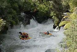 The upper section of the Kaituna, also referred to as Okere River, offers some of the best whitewater kayaking and rafting in the world, with the Okere Falls area containing the highest commercially rafted waterfall, 7 metres (23 ft), in the world.[3] It is also famous for its trout fishing.