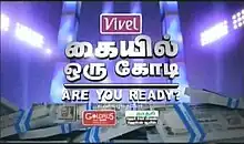 Kaiyil Oru Kodi, Are You Ready? (English: ten million in your hand, Are you ready?) was a 2012-2012 Indian game show presented on 10 March 2012 and 28 October 2012, Sun TV in Tamil. It's the official Tamil adaptation of the British game show, The Million Pound Drop Live. The show was hosted by Rishi.[1]