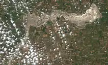 Satellite photo of the Kakhovka Reservoir on 8 August 2023, now completely dried up.