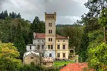 The Kamenice Castle was rebuilt in the English neo-Gothic style in 1875–1880 by the architect Jiří Stibral.[5] Today it is privately owned and inaccessible. Next to the castle is located the Church of Saint Francis of Assisi. The originally early Gothic church was rebuilt in 1797 and modified into its current form in 1898.[6]