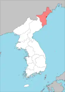 Kankyōhoku-dō (咸鏡北道, Kankyōhoku Province, Kankyo Hoku, or North Kankyō Province) is a former Korean province, one of the administrative divisions of Korea under Japanese rule. Its capital was Seishin. The province consisted what is now the North Korean province of North Hamgyong, as well as parts of neighboring provinces.[1]