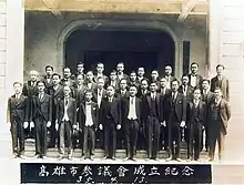 After the retrocession of Taiwan and the ensuing devolution, 56 candidates were elected to the Kaohsiung County Senate upon the indirect election held on 15 March 1946.[3] The Government announced in 1950 the reorganization of local governments,[4] including partition of Kaohsiung County and Pingtung County, thus paving way for further devolution in Taiwan.[5] The 48-member Kaohsiung County Council, succeeding the county senate, was established on 11 January 1951 after the local elections held on 17 December 1950.[6]