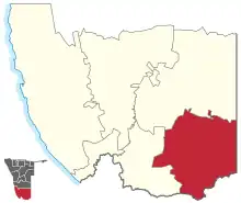 - ↑ "Creation of new regions and division and re-division of certain regions into constituencies: Regional Councils Act, 1992" (pdf). Government Gazette of the Republic of Namibia. No. 5261. Government of Namibia. 9 August 2013. p. 36.