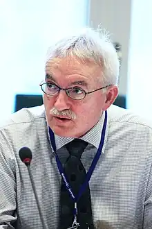Karl V. Matthíasson is an Icelandic priest and former politician. He was a member of Alþingi from 2001 to 2003 and again from 2007 to 2009. Originally a member of the Social Democratic Alliance, he joined the Liberal Party in March 2009 due to his views on the fishing industry regulations not coinciding with the views of the party. In the 2009 Icelandic parliamentary election, he failed to win a seat.[1][2]